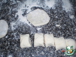 Разрезать на небольшие кусочки и раскатать в не очень тонкие лепёшки -