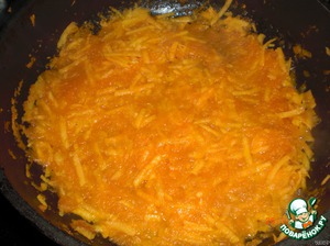 В сковороде растопить столовую ложку масла и натереть туда на крупной тёрке тыкву, тушить на среднем огне, добавить чуть-чуть сахара и довести до готовности.
