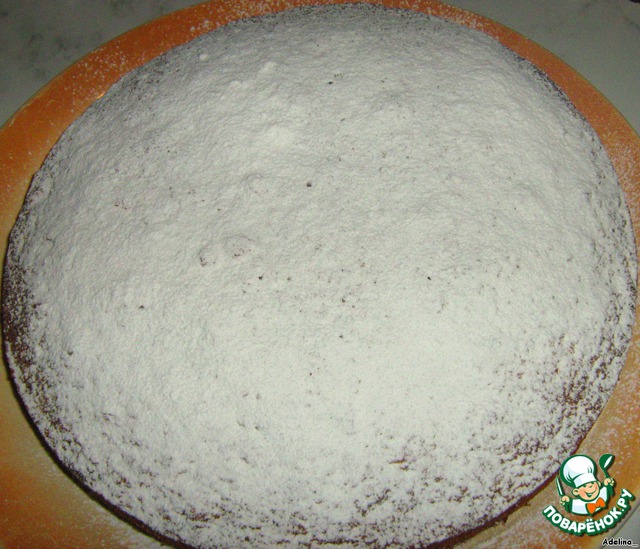 • Дать немного остыть в форме, потом переложить на блюдо и посыпать ещё теплый сахарной пудрой.