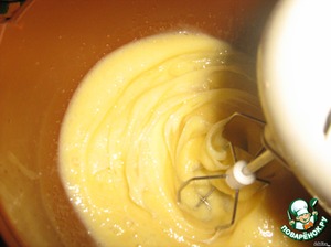 • Взбить яйца с сахаром и ванилькой, добавить мед, растопленный маргарин, молоко.