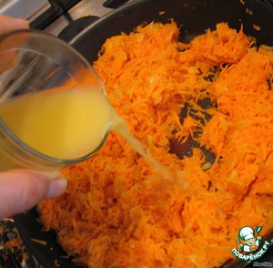 вливаем сок, солим, перчим и оставляем слегка протушиться, периодически помешивая (морковь готова, когда она из оранжевой становится желтого цвета)