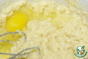 По одному добавить 3 яйца, тщательно вмешивая каждое. То есть одно добавили, вмешали и только потом следующее.