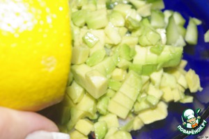 Авокадо нарезаем кубиками, сбрызгиваем соком лимона.