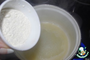 Для профитролей, в воду добавить сахар, соль (по щепотке), масло. Поставить на огонь и постоянно помешивая - довести до кипения.