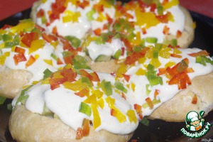 И украшаем мелко нарезанным болгарским перцем, разных цветов.