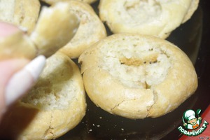 Когда профитроли испекутся, нужно сделать в них проколы, для выхода горячего воздуха, охладить на решётке и только потом срезать верхушки.