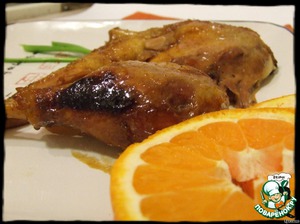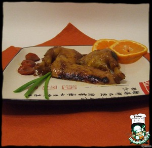 Включаем под утятницей сильный огонь и готовим, покуда не выпарится весь маринад. Огонь я делал немного ниже максимального. Процентов 70 от полной мощности, проще говоря. Можно развести мед с соевым и мандариновым соком (или апельсиновым) и смазывать утку кистью. Прошу заметить, что крылья разварились. Если не хотите, чтобы было так, можно готовить меньше, но мне нравится, когда утка распадается во рту, поэтому готовилось именно так. Весь процесс готовки в утятнице занял у меня чуть больше часа. За это время утка была перевернута один раз, было прослушано 2 альбома Захара Мая и выпито пол бутылки домашнего красного.