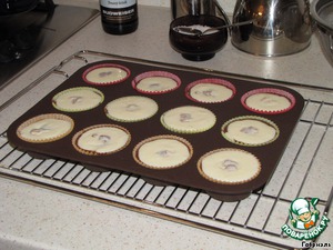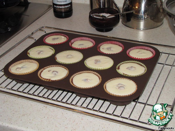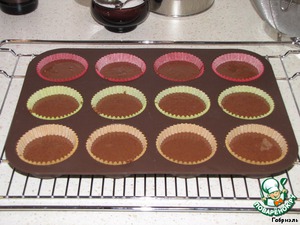 Разлить ложкой шоколадное тесто по 12 формочкам для маффинов.