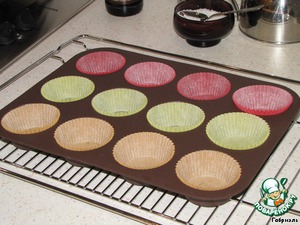 Духовку разогреваем до 175 градусов, форму для маффинов прокладываем бумажными формочками.