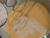 добавляем 50 мл растительного масла, постепенно высыпаем 20грамм разрыхлителя и 1 стакан муки, все хорошо перемешиваем (можно миксером или венчиком, до получения однородной кремообразной массы)