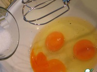 взбиваем 3 яйца, ванилин и 1/2 стакана сахара до увеличения объема в 2-3 раза, где-то минуту