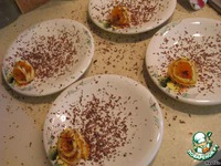 блюдца украшаем цветочками из апельсина, посыпаем тертым шоколадом