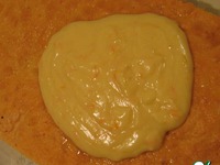 еще один ванильно-апельсиновый корж, пропитываем апельсиновым соком, смазываем апельсиновым кремом