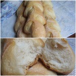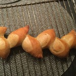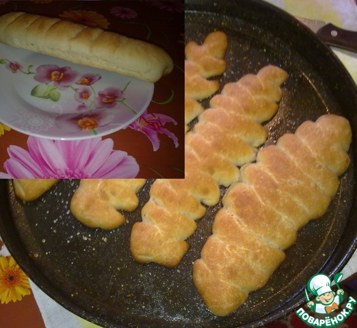 Другое дело эпи. Перед тем, как уложить их баиньки, придадим им форму колоска. Берем дубинку, которой уже не судьба стать багетом, и безжалостно надрезаем ее ножницами под углом 45 градусов на ¾ толщины.
