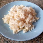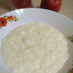 Пока варится рис, взбить яйца с сахаром. Постоянно мешая, тонкой струйкой ввести яичную смесь в кашу.