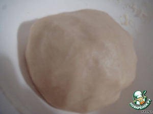 Замесить и скатать в шар тесто. Оно должно получится мягким и не липнуть к рукам. Если получится сухим и будет рассыпаться, надо добавить столовую ложку растительного масла. Если будет липким - добавить муки.