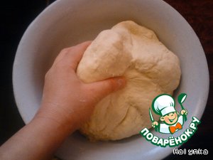 Тесто не должно липнуть к рукам. Где-то, примерно, килограмм муки пойдет.Вымешиваем тесто.