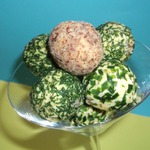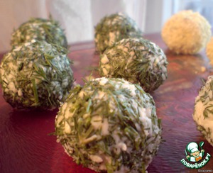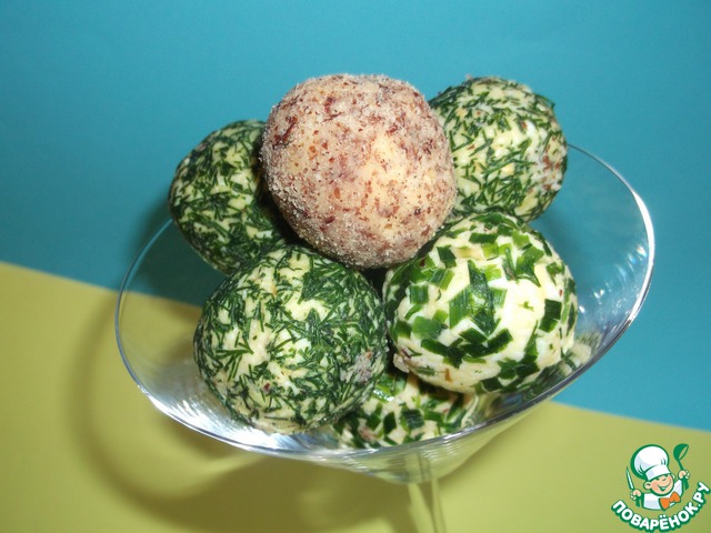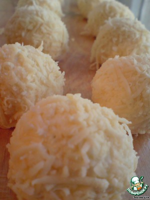 Из сырной массы катаем шарики. Половину из них обваливаем в сырной стружке.