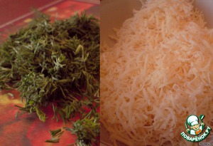 К ним на этой же терке натереть плавленые сырки, добавить майонез и чеснок, пропущенный через пресс. Перемешиваем до однородной массы.