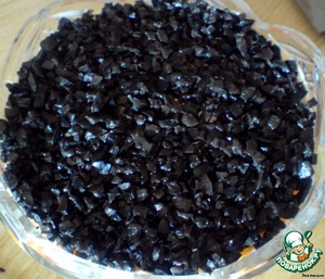 Измельчаем маслины. У меня (на мой салатник) ушло чуть больше половины 360 граммовой баночки.
