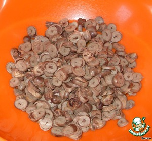 Предварительно отваренные сердечки режем соломкой! Я совершила роковую ошибку и порезала колечками, вкус от этого, конечно, не изменился, но колечки так и норовили не вписаться в общую салатную массу.