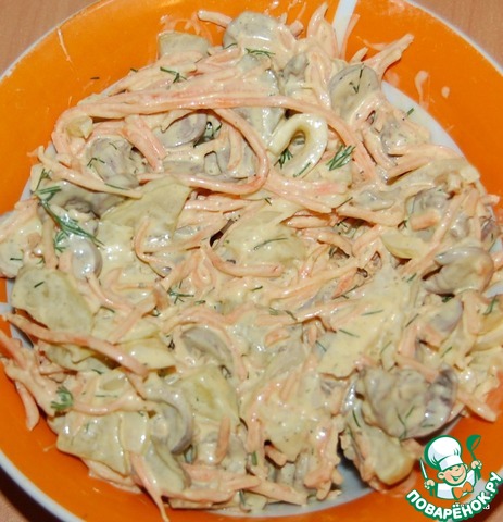Очень несложный и очень вкусный салатик! Я его тоже готовила на день рождения мамули! Со стола гости его смели в первую очередь, из чего я сделала вывод, что получилось вкусно!