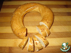 Бублик нарезаем по всей окружности на кучу маленьких кружочков.
