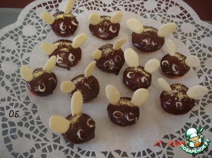 Опускаем в шоколад, даем застыть, наносим глазки белым шоколадом, даем застыть, зрачки черным, я не дала застыть, все потекло!
