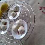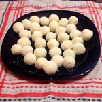 Чайной ложкой берем массу, вовнутрь кладем миндаль и формируем шарик