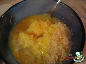 сыр трем на мелкой терке, добавить яйца и хорошо перемешать