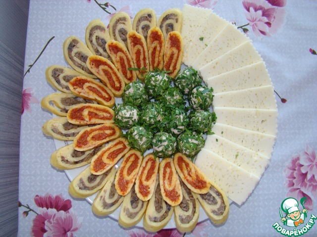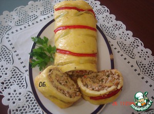 Рецепт нашла в кулинарной книге"Фаршированные блюда", очень заинтересовал тем, что сам рулет из сыра, а начинка может быть по вашему вкусу!