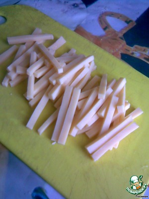Сыр брусками. А можно и на крупной терке натереть.