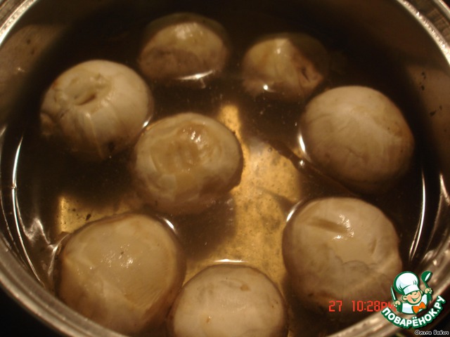 Шляпки опустить в кипящую воду со специями и проварить 2 мин. -