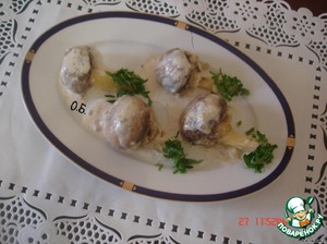 Положить на бок, полить сливками, которые у нас в форме, и поставить опять в духовку на 30 мин.