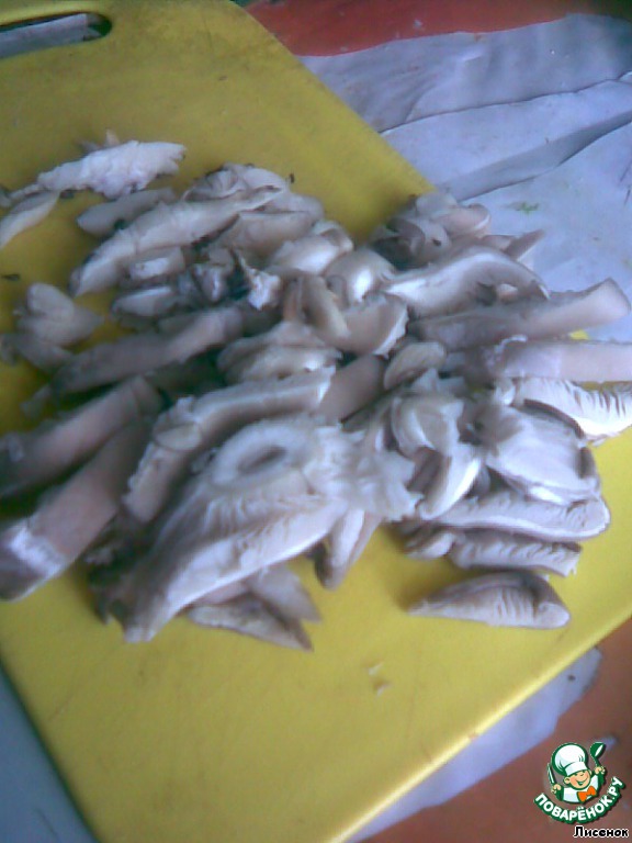 • Удалить с печени пленку и прожилки. Нарезать брусочками.