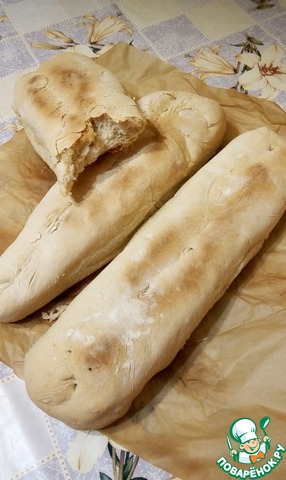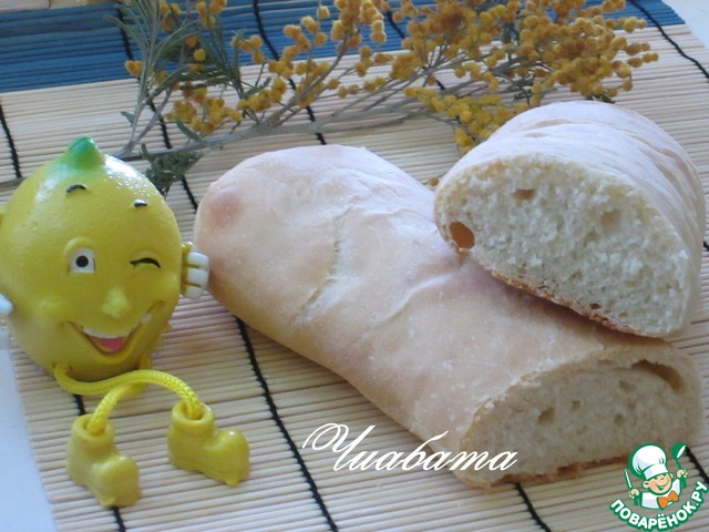 Чиабатта в переводе с итальянского звучит как «тапок», видимо, форма хлеба напоминает этот незамысловатый предмет, ну а по вкусу я бы так не отзывалась о чиабатте - мягкая, воздушная, с хрустящей корочкой, улетает, будучи ещё горячей!!! -