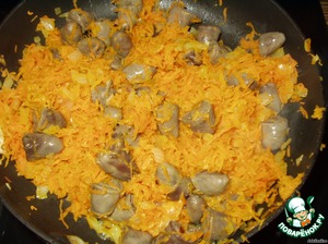 Лук обжарить на сливочном масле, туда добавить морковку,