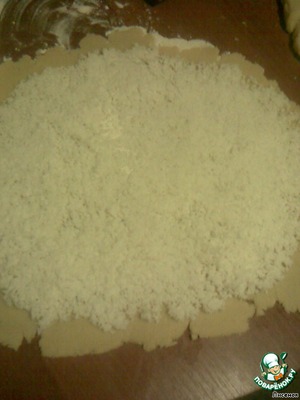 В первый рулет кладем кокосовую стружку.