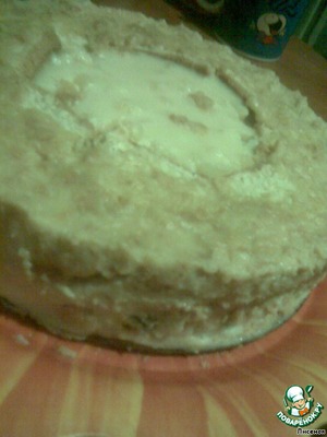 Пустоту по краям заполнила кремом с кусочками коржа.Утрамбовать хорошенько крем. -