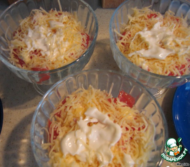 немного тертого сыра, покрытого 1 ч.л. майонеза