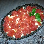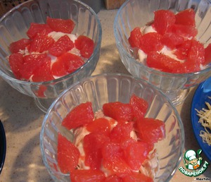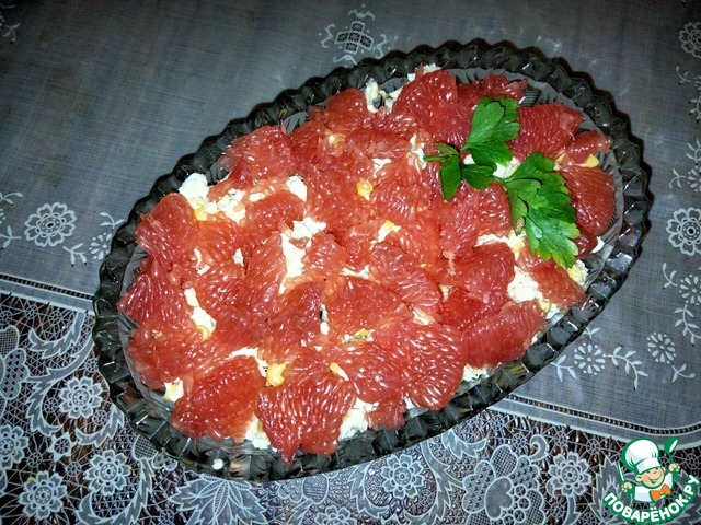 теперь крупные кусочки грейпфрута, слегка смазываются майонезом