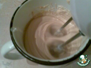 • Делаем крем: сметану взбить со сгущёнкой и сахаром, добавить 1ст. л. муки с горкой, снова взбить.