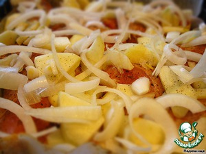 Майонез, мясо и яблоки пустят сок и ничего не пригорит. -