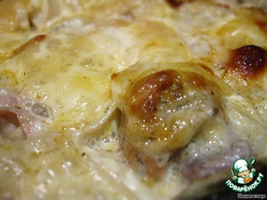 Теперь просто заливаем майонезом. Ставим в духовку и запекаем до готовности на маленьком огне, если у вас сильная духовка, как у меня.