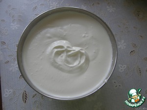 • Пока выпекается, готовим крем. Взбиваем сметану с сахаром, пока объем не увеличится вдвое-втрое. Добавляем размягченное масло и опять взбиваем. Ставим в холодильник.