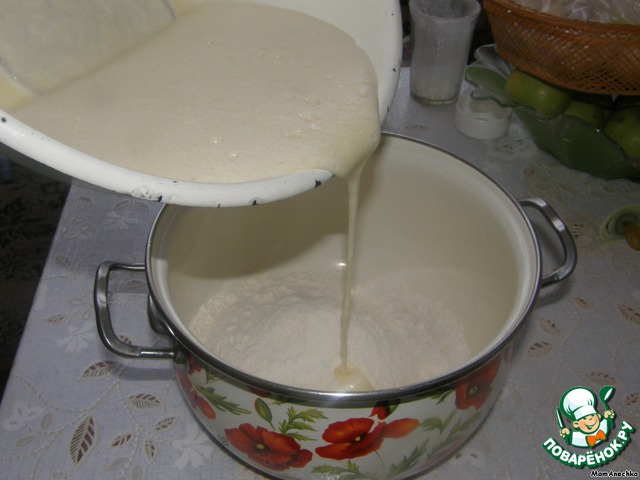 • 1. 1 ч.л. соды гасим уксусом или лимонным соком. 2. Просеиваем в отдельную посудину муку и потом тоненькой струйкой добавляем взбитые яйца, сахар, сметану и взбиваем до получения однородной массы.