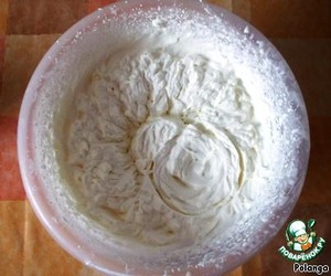 Охлажденные сливки хорошо взбить. В конце взбивания, когда масса станет густой, добавить сгущенку.