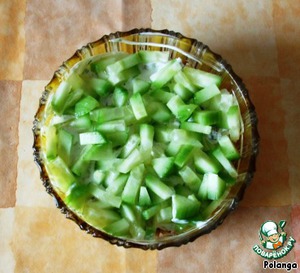 Порезать огурцы. Положить в салатницу.