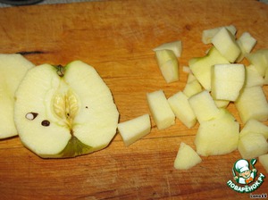 Яблоко очистить от шкурки и семян и нарезать кубиками.