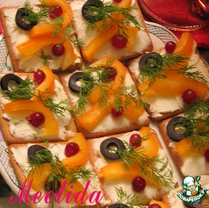 Украшаем кружочком маслинки, можно добавить немного свежей зелени и...